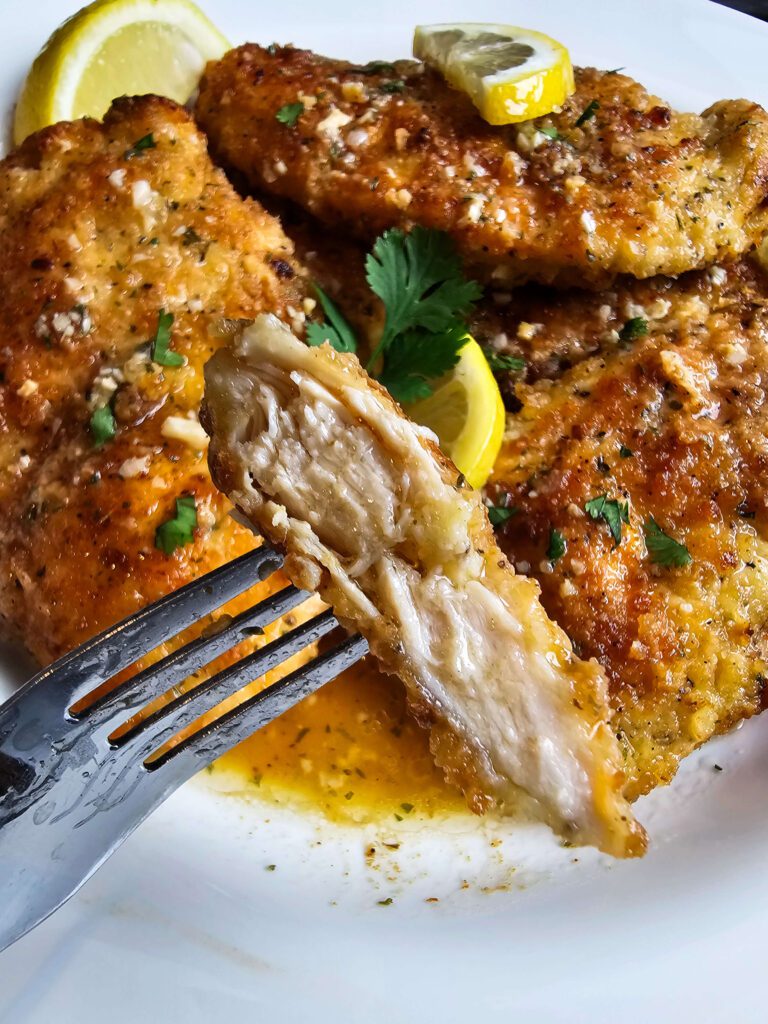 I’ve found that slicing the chicken breasts into thinner cutlets helps them cook faster and stay juicy. I always make sure my pan is nice and hot before adding the chicken so I get that golden, crispy crust. And for the best flavor, I use fresh lemon juice and real grated parmesan—it really makes a difference!