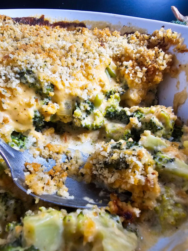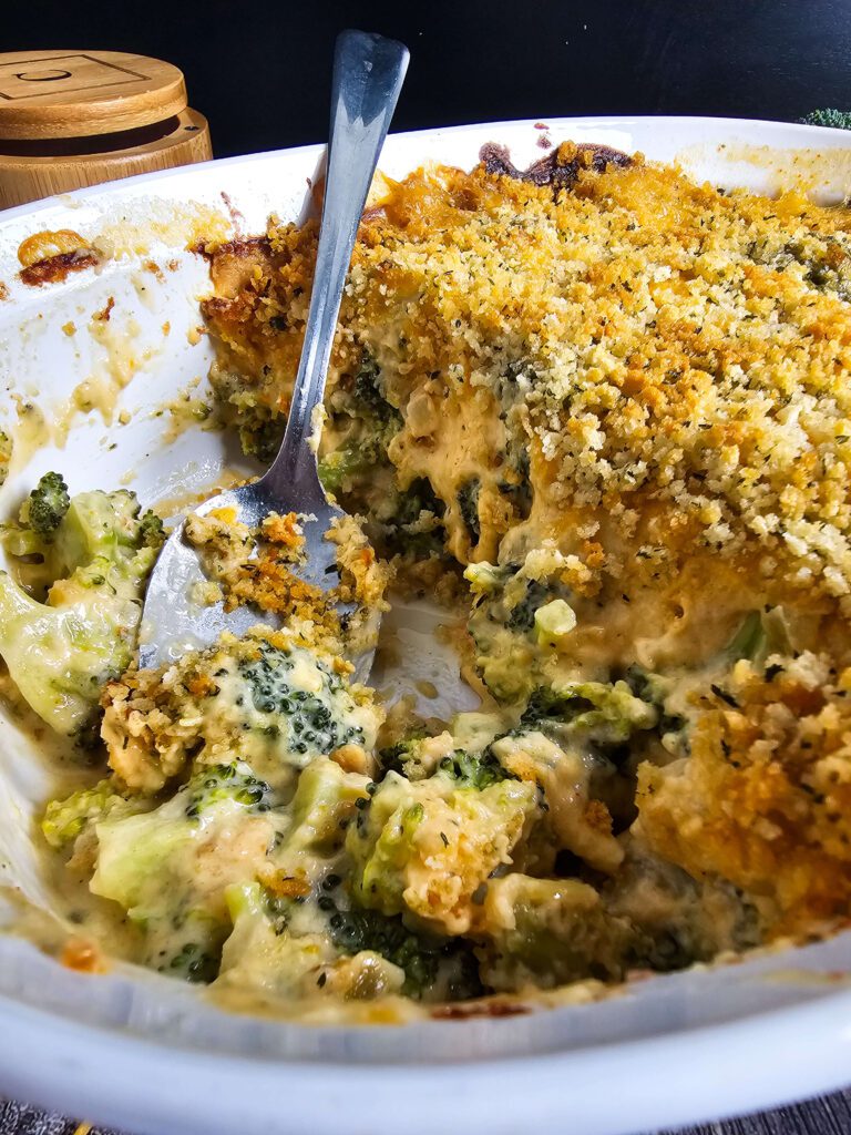 - Low-carb option when you skip the panko topping – I love that I can leave off the breadcrumbs and still have a rich, low-carb broccoli bake that’s packed with flavor and fits into a lighter meal plan.