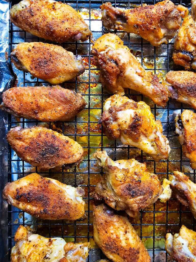 I use baking powder in the rub and pat the wings super dry before seasoning—it works like magic in the oven or air fryer.