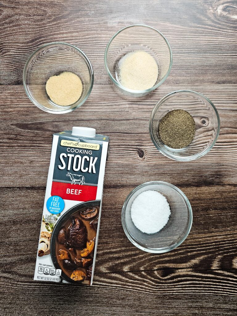 - ½ cup beef broth (or water)