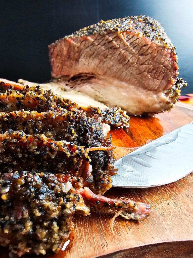 I like the flat cut if I want nice, uniform slices. If I’m in the mood for something richer and more shredded (like “burnt ends”), I’ll go with the point cut because it has more marbled fat.