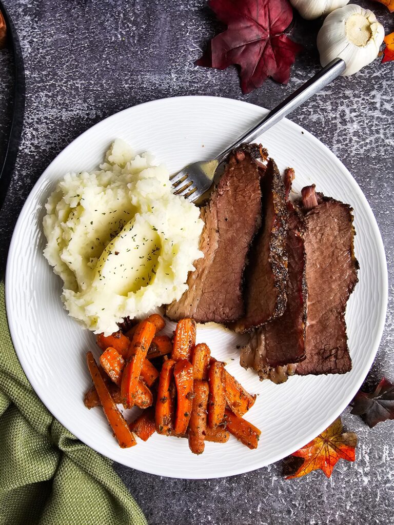 When I’m planning a Holiday Main Dish, I love pairing this brisket with classic comfort foods like creamy mac and cheese, buttery mashed potatoes, or a zesty vinegar-based coleslaw. For drinks, I find that a cold glass of sweet tea or a bold red wine like a Malbec really complements the peppery crust. This meal is my absolute favorite for big Game Day gatherings or a Father’s Day BBQ because it feels like a celebration on a plate. It’s also a staple at my Christmas and Hanukkah dinners because it’s so easy to scale up for a crowd.