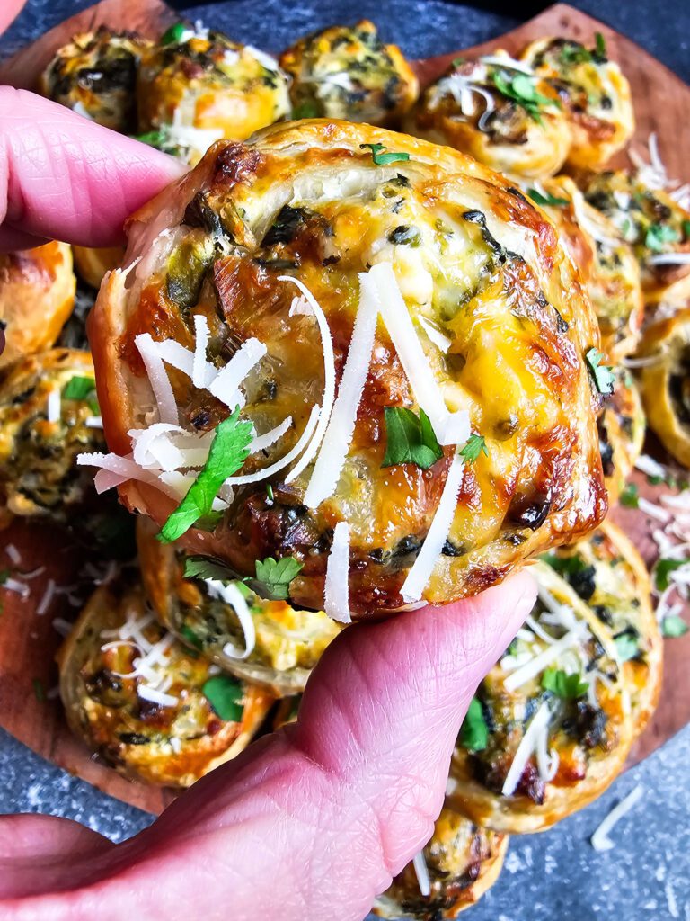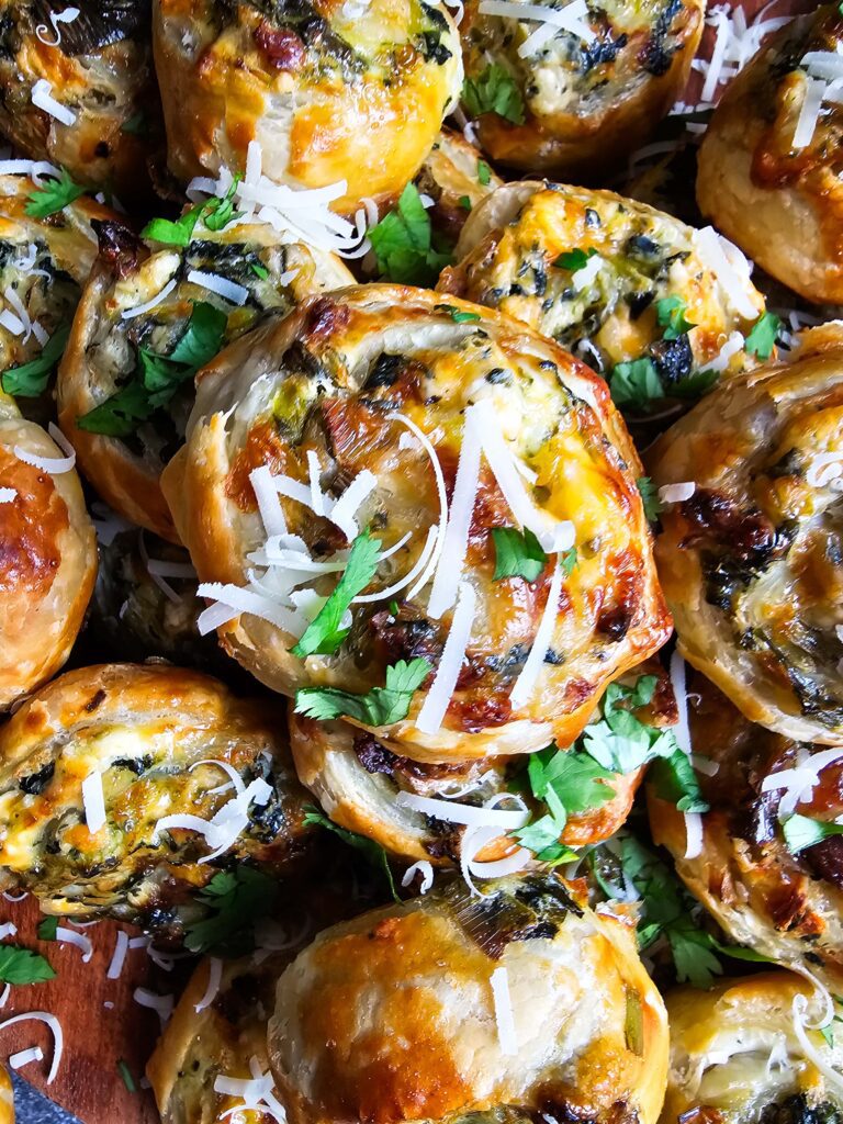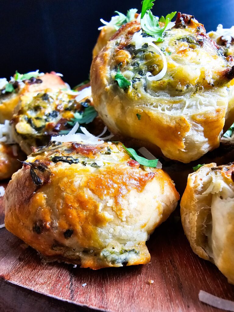 - Serve and enjoy: Serve warm or at room temperature. These savory spinach leek puff pastry pinwheels are perfect alongside sparkling wine, soup, or your favorite holiday spread!