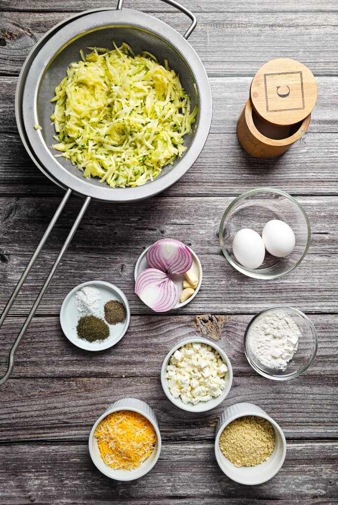 I always make sure to grate the zucchini, sprinkle it with salt, and then squeeze out as much liquid as possible before mixing everything together.