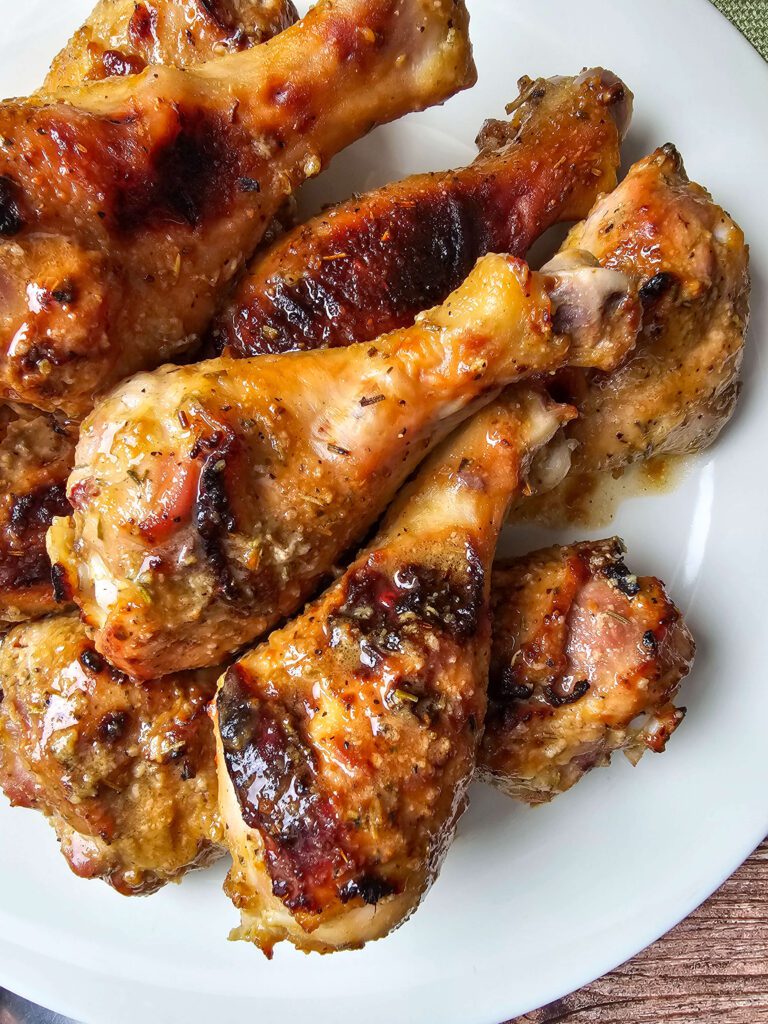 I let the chicken legs cool completely, then place them in a freezer-safe bag or container. I try to lay them out in a single layer so they don’t stick together. When I’m ready to eat them again, I thaw them in the fridge overnight and reheat in the oven or air fryer.