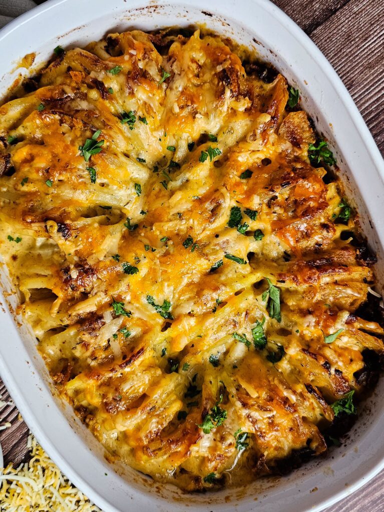 If you happen to have leftovers, just put them in an airtight container and keep them in the fridge for up to four days. I actually think the cheesy flavors get even better the next day as they have more time to meld together! When you’re ready to eat, I recommend reheating them in the oven at 350°F to keep those Hasselback edges nice and crispy.