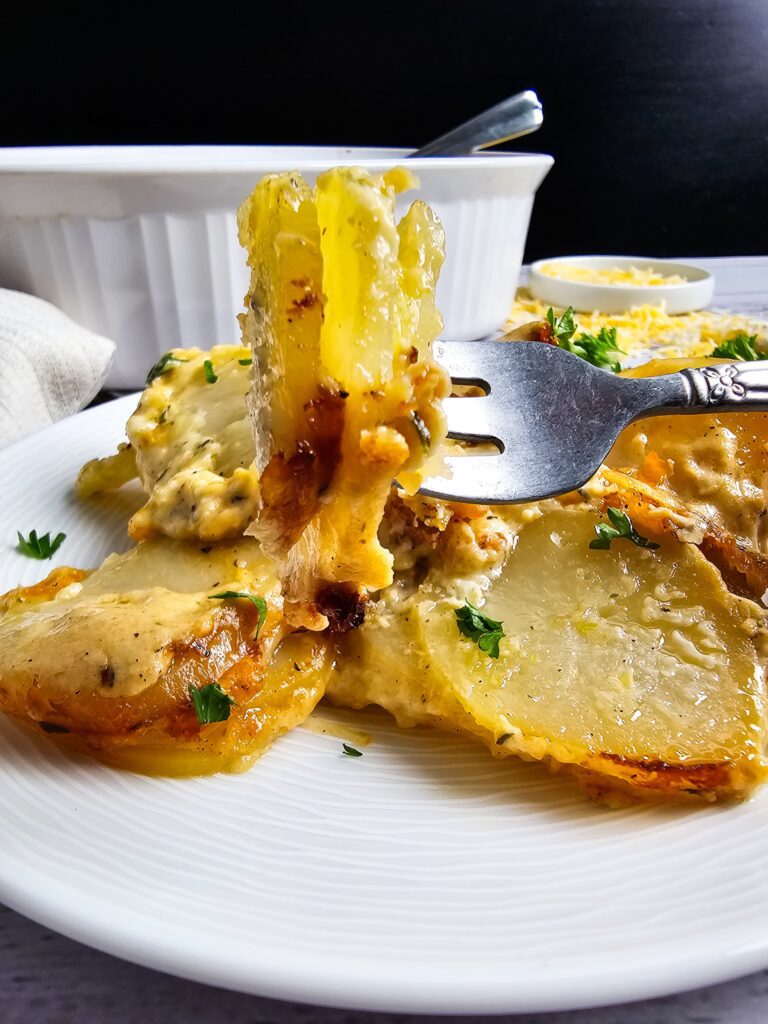 - Let it Rest: I know it’s hard to wait, but letting the dish sit for 10 minutes after baking helps the sauce thicken up so it clings to every Yukon Gold potato slice.
