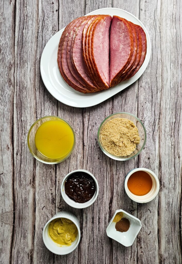 - 1 (5–7 lb) spiral-cut boneless ham – I like using a spiral ham because it’s already sliced and the glaze seeps into every layer.