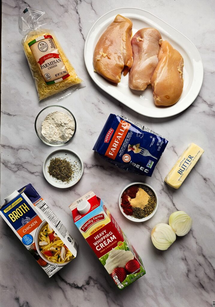- 12 oz Farfalle Pasta – I boil this until it’s al dente. I like bowtie pasta because it holds the creamy sauce really well.