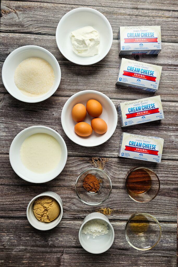 • 2 lb (4 packages, 8 oz each) full-fat cream cheese, room temperature – The heart of every great cheesecake! Room temperature ensures a smooth, creamy batter.