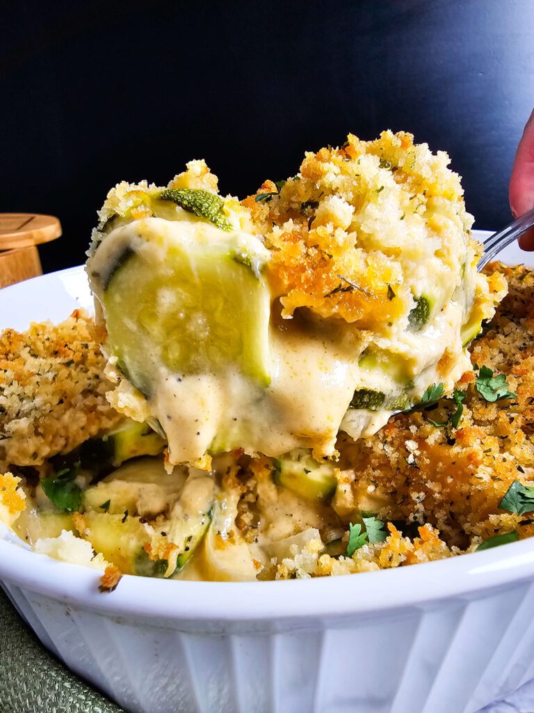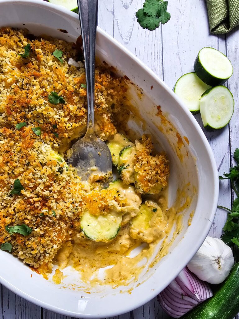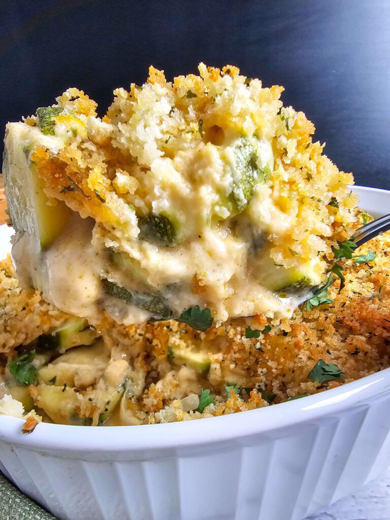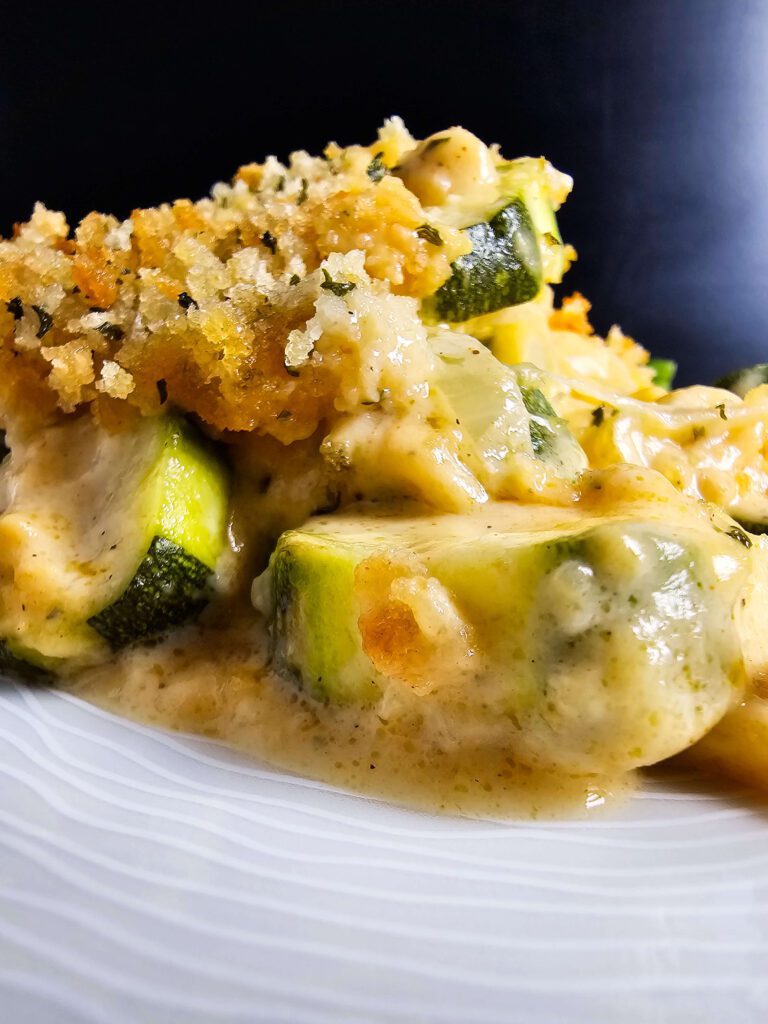 - The combination of creamy cheese sauce, tender zucchini, and a crunchy topping makes this dish one of those comfort foods I could eat any night of the week.