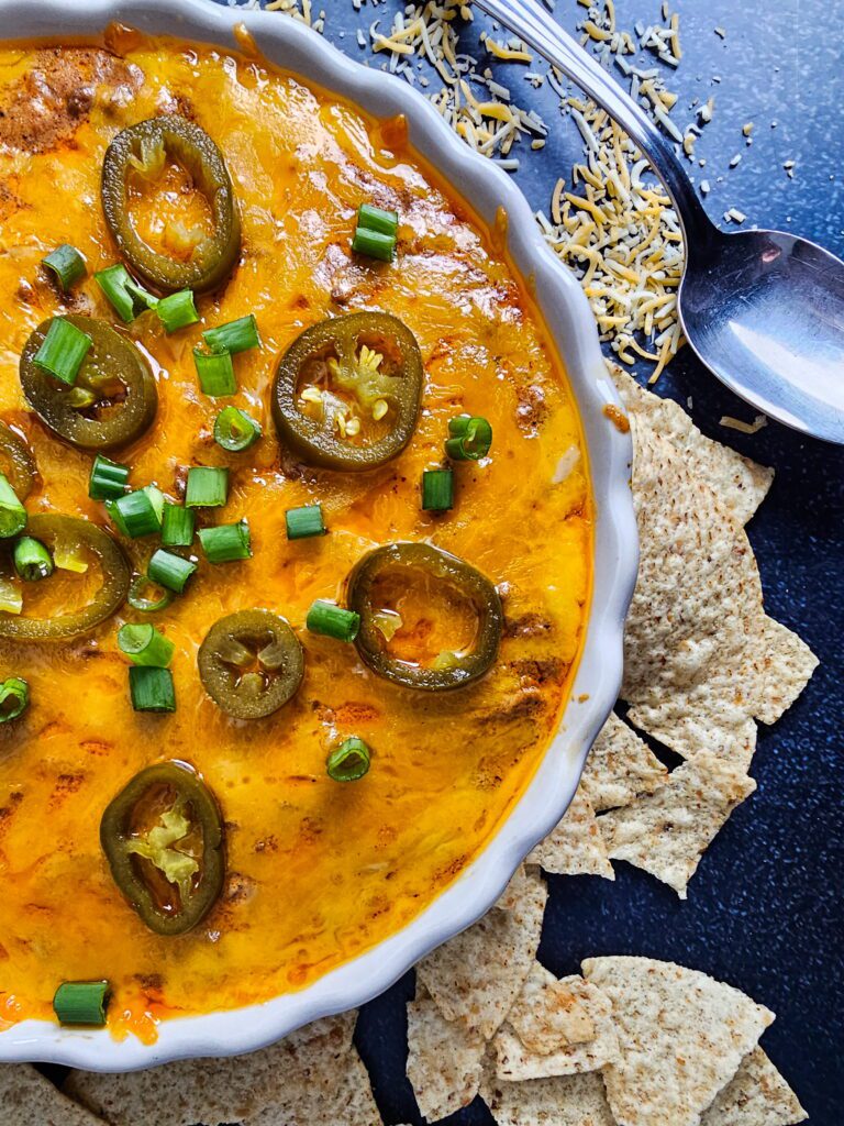 There is nothing worse than cold cheese dip halfway through the second quarter of the game! I love using a mini slow cooker or a cast-iron skillet to keep everything melty for hours. If you don’t have those, you can even set your baking dish on a warming tray to keep it perfect.