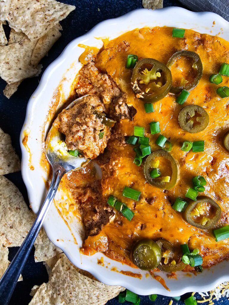 The Ultimate Beefy Chili Cheese Dip (Game Day Appetizer)